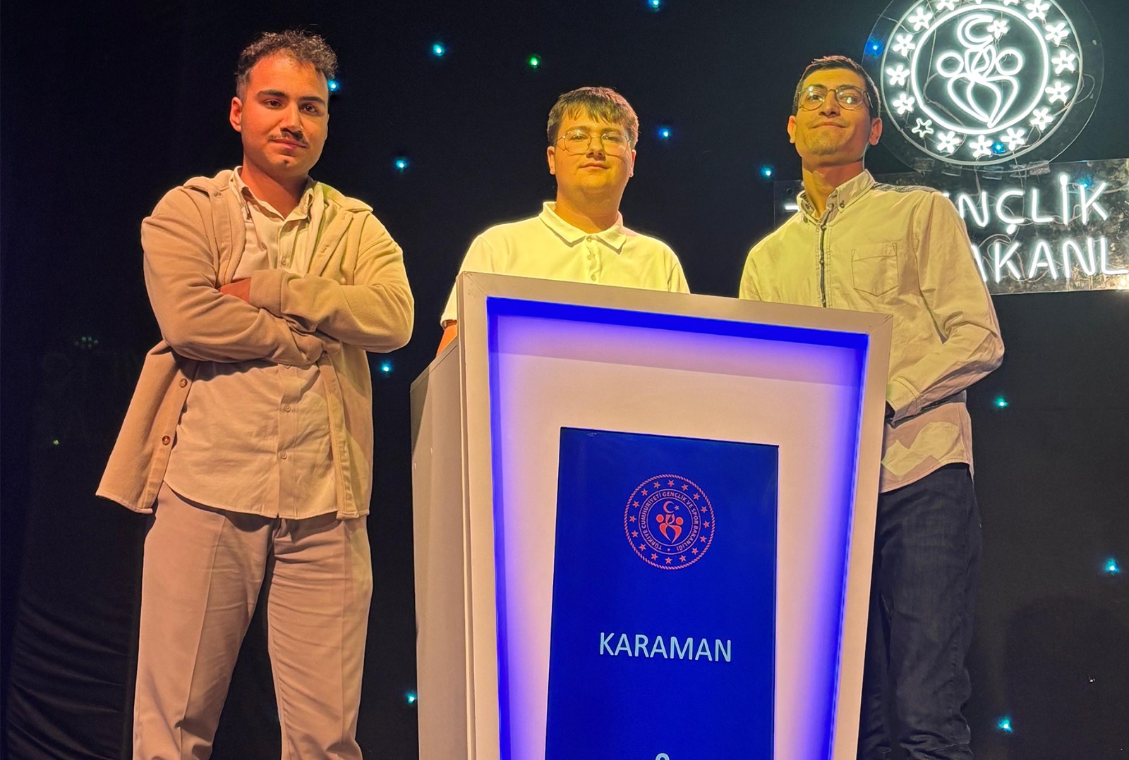 Gençlik ve Spor Bakanlığı Gençlik Hizmetleri tarafından 22–25 Eylül 2025 tarihleri arasında Eskişehir’de düzenlenen İç Anadolu Bölgesi 10. Kültür ve Sanat Yarışmaları Bölge Finali’nde Karaman’ı temsil eden Gençlik Merkezi üyesi Safa Esen, Davut Toğan ve Kerim Barış Beytaş, bilgi yarışması kategorisinde sergiledikleri başarılı performansla birinciliğe ulaştı.