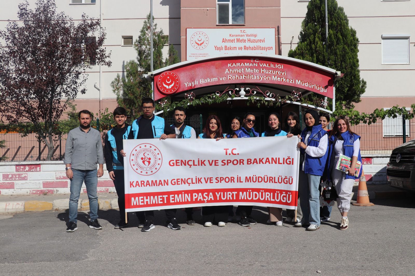 Karaman Gençlik ve Spor İl Müdürlüğüne bağlı Mehmet Emin Paşa Yurdu öğrencileri, Ahmet Mete Huzurevi sakinleriyle buluşarak gönülleri ısıttı.